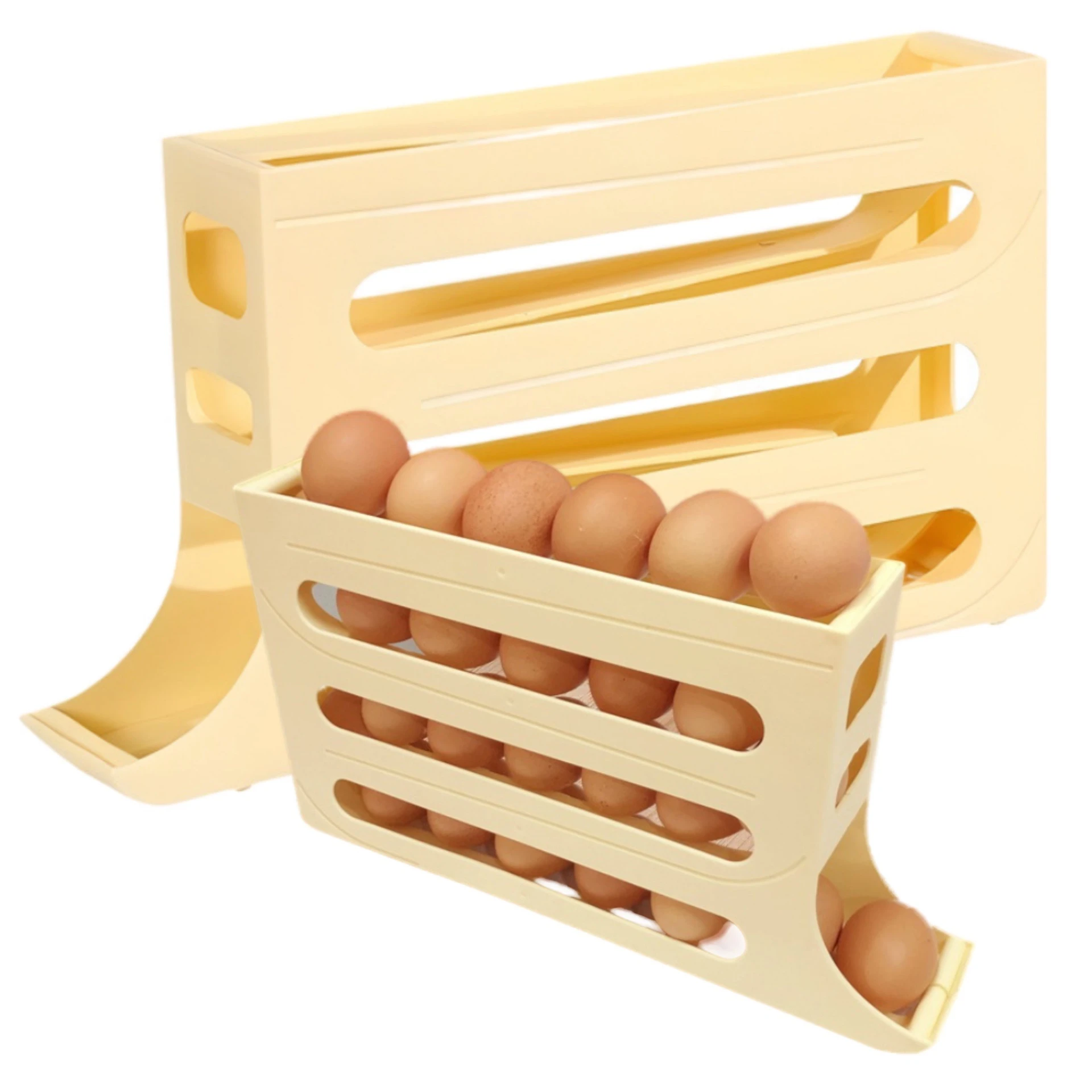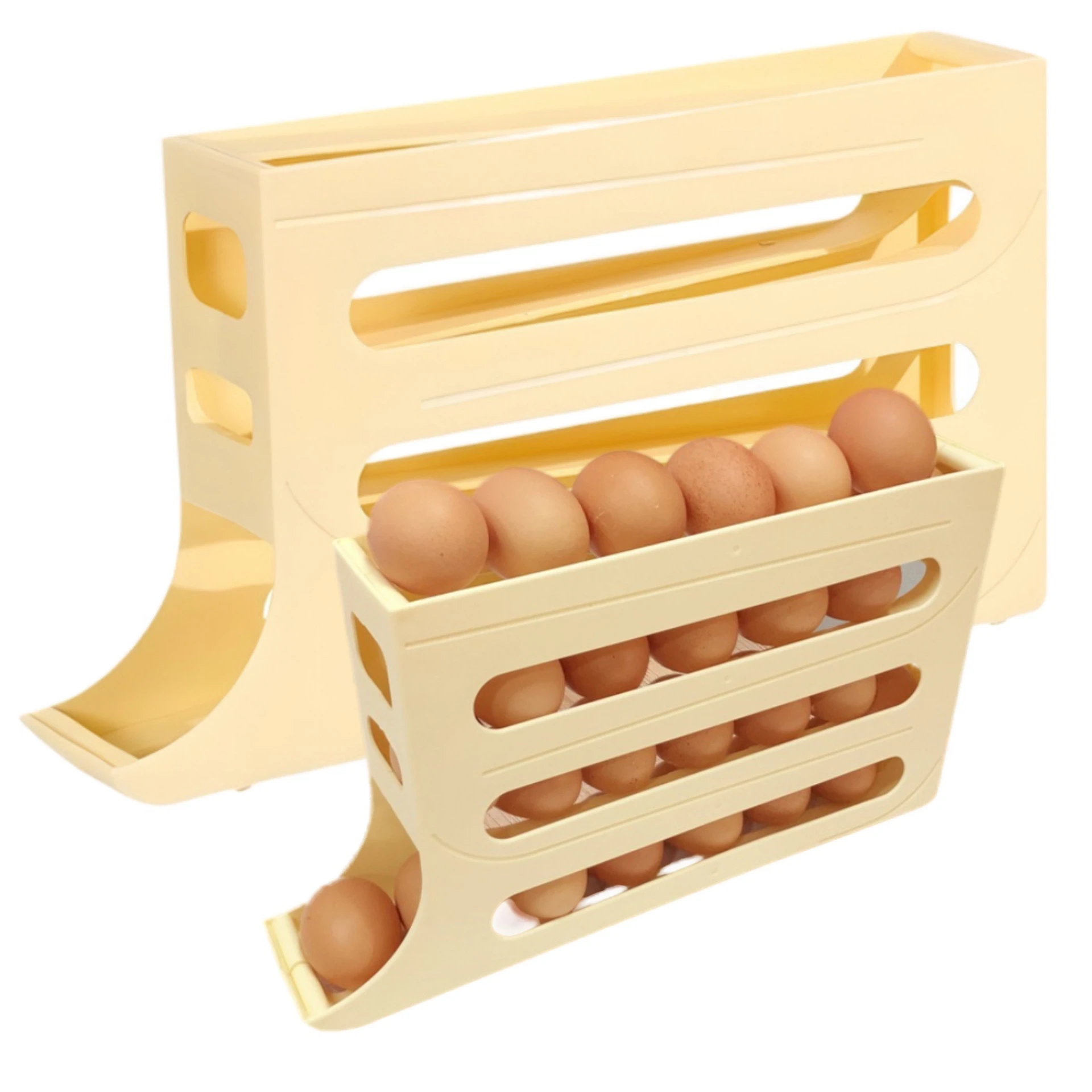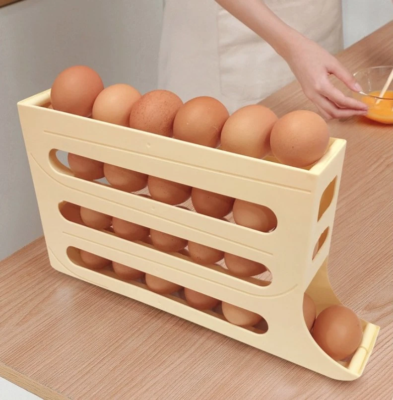 Posiada 4 poziomy półek, umożliwiające wygodne przechowywanie od 20 do 30 jajek.