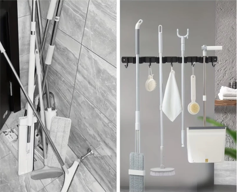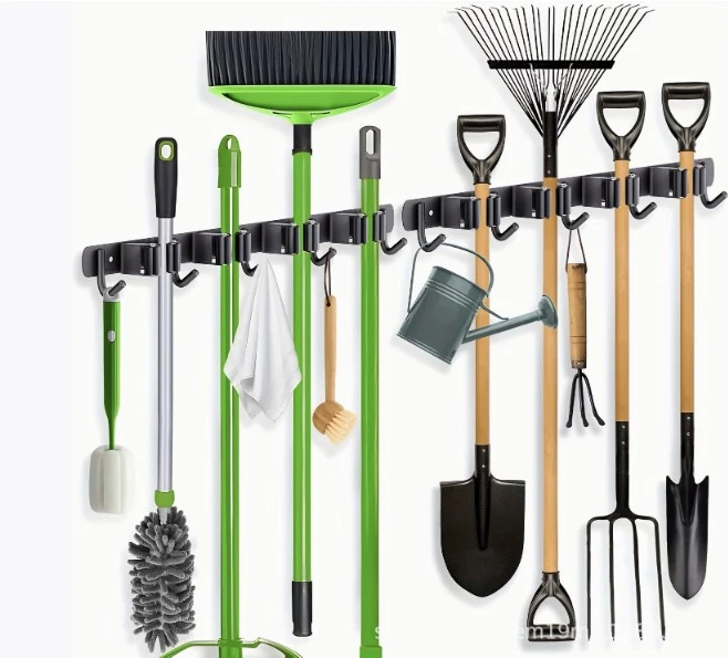 Uchwyt umożliwia przechowywanie różnych narzędzi, takich jak łopaty, grabie, miotły oraz inne przedmioty z trzonkami.