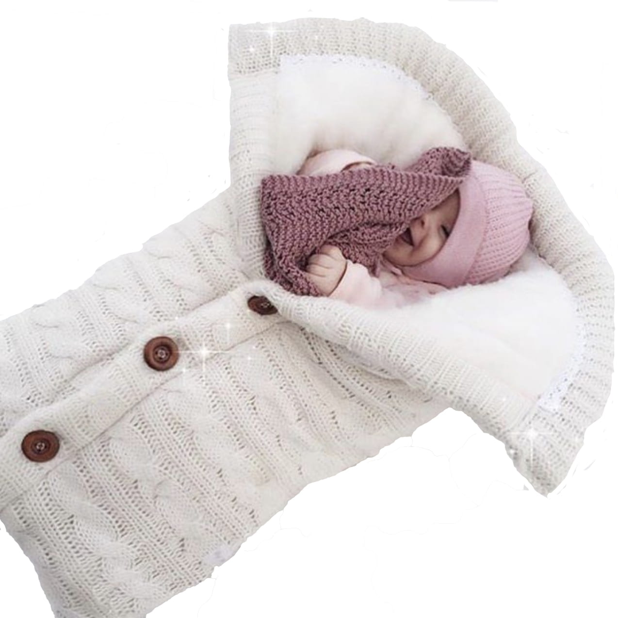Kocyk otulacz dla niemowląt do wózka ocieplany rożek becik sweter biały