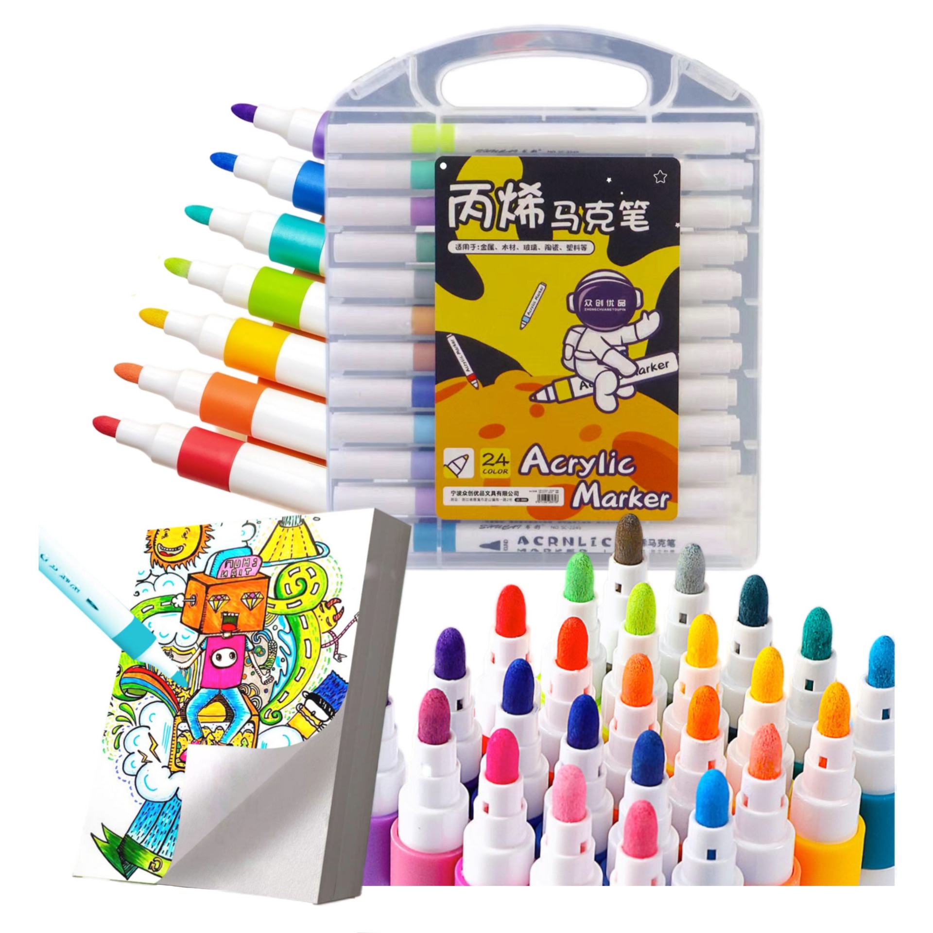 Zestaw 24 markerów akrylowych to praktyczny wybór do rysowania, malowania i dekorowania.