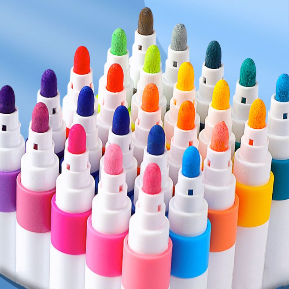 Markery można stosować na wielu powierzchniach, takich jak papier, drewno, płótno, szkło czy ceramika.
