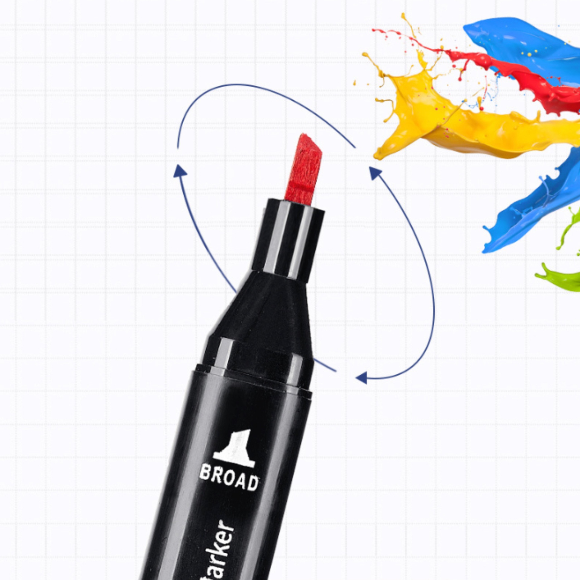 Każdy marker posiada dwie końcówki, co zapewnia wygodę pracy zarówno przy detalach, jak i większych powierzchniach.