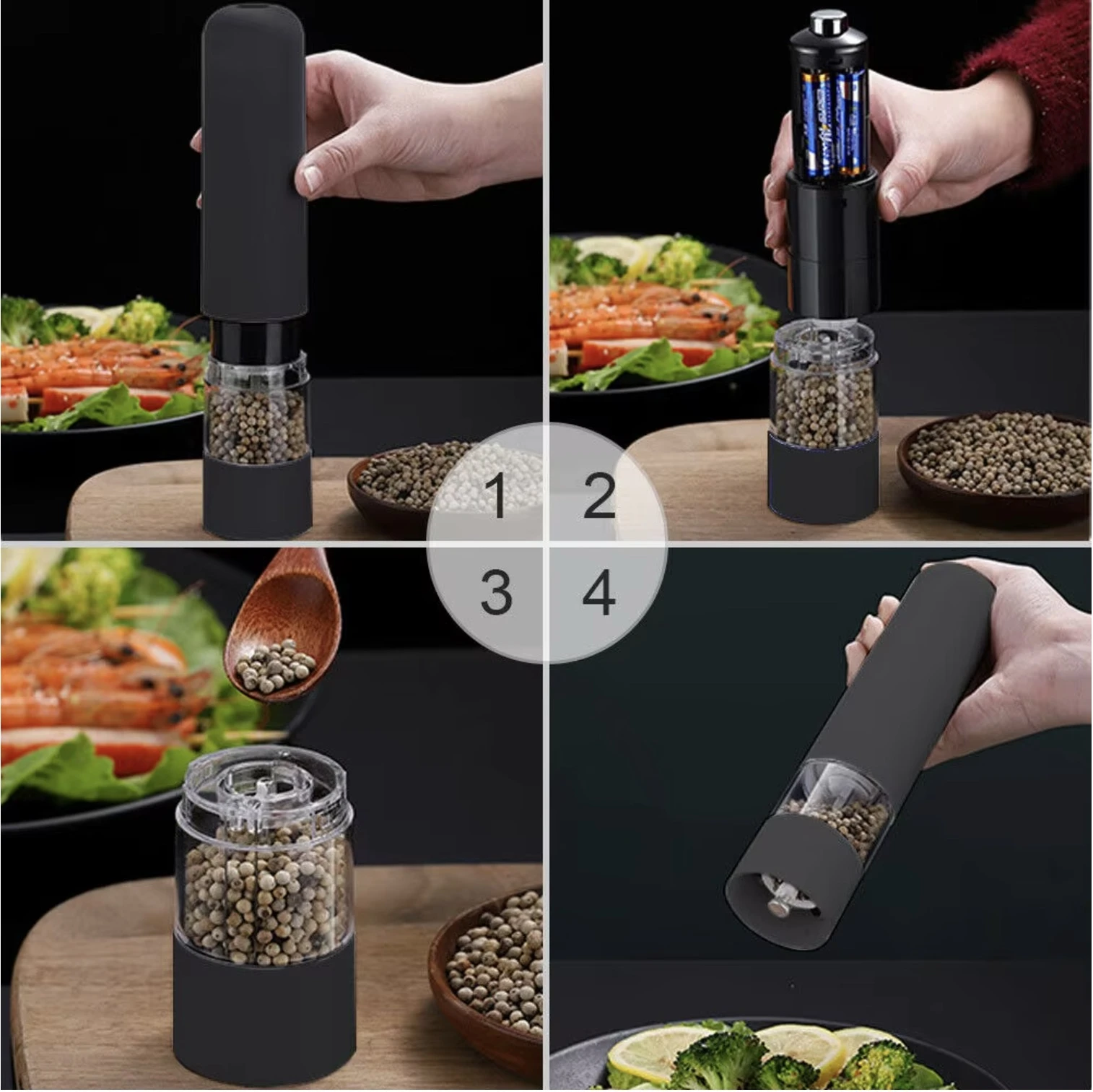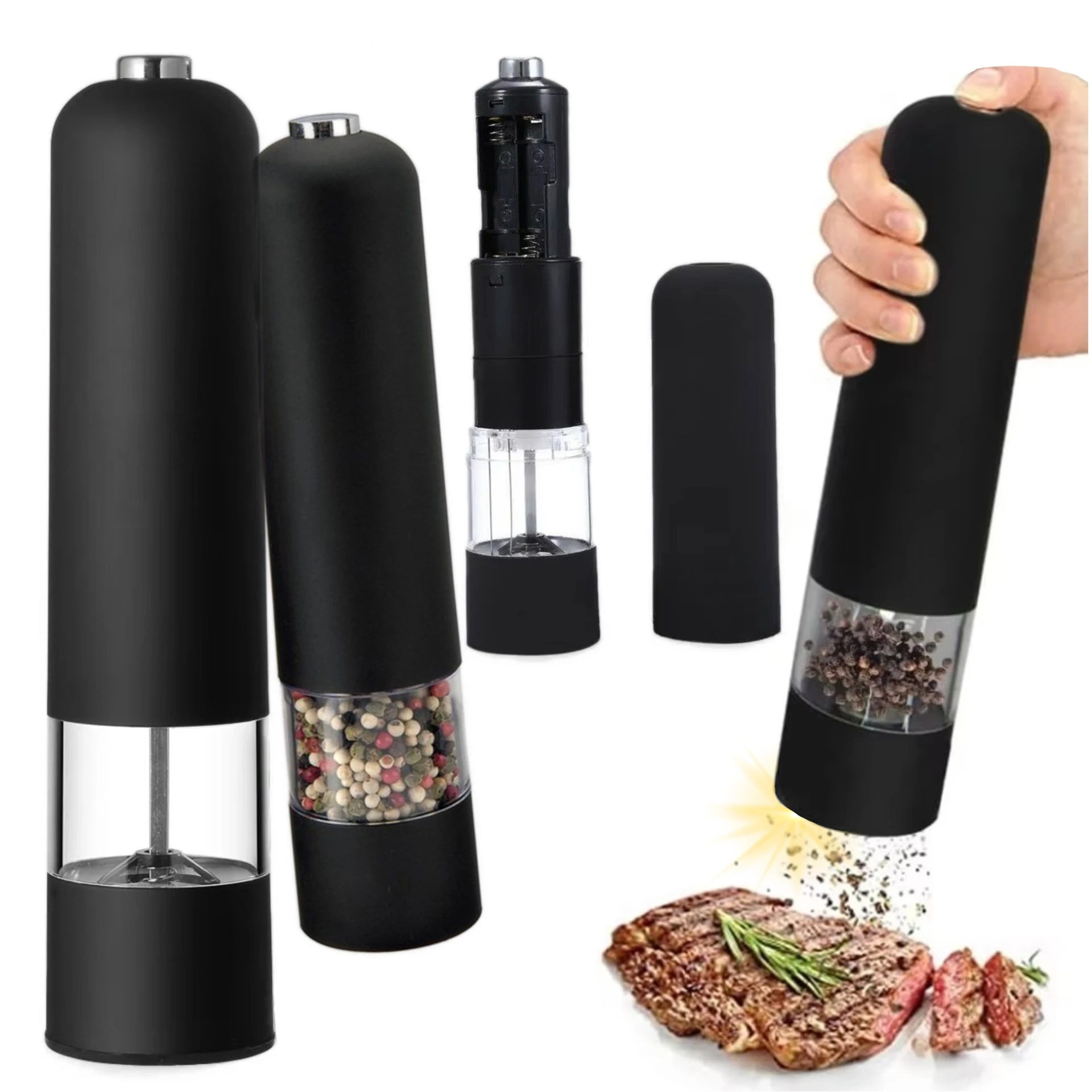 Młynek elektryczny do przypraw soli pieprzu czarny solidny na baterie