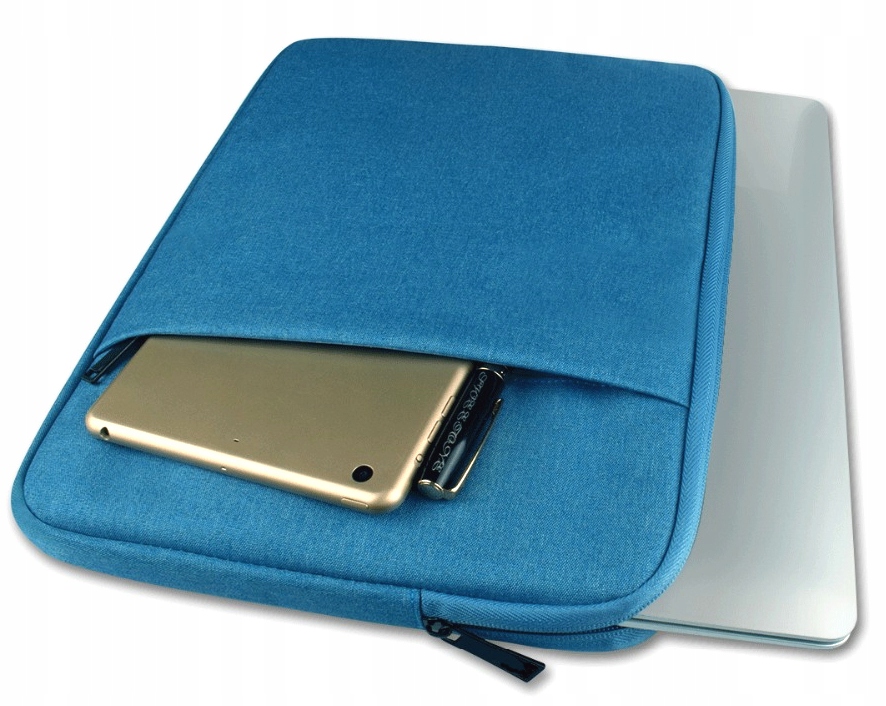 Pokrowiec na laptopa posiada z przodu dodatkową kieszonkę na zamek - idealną na telefon, notatnik, długopisy, lub mysz i zasilacz.