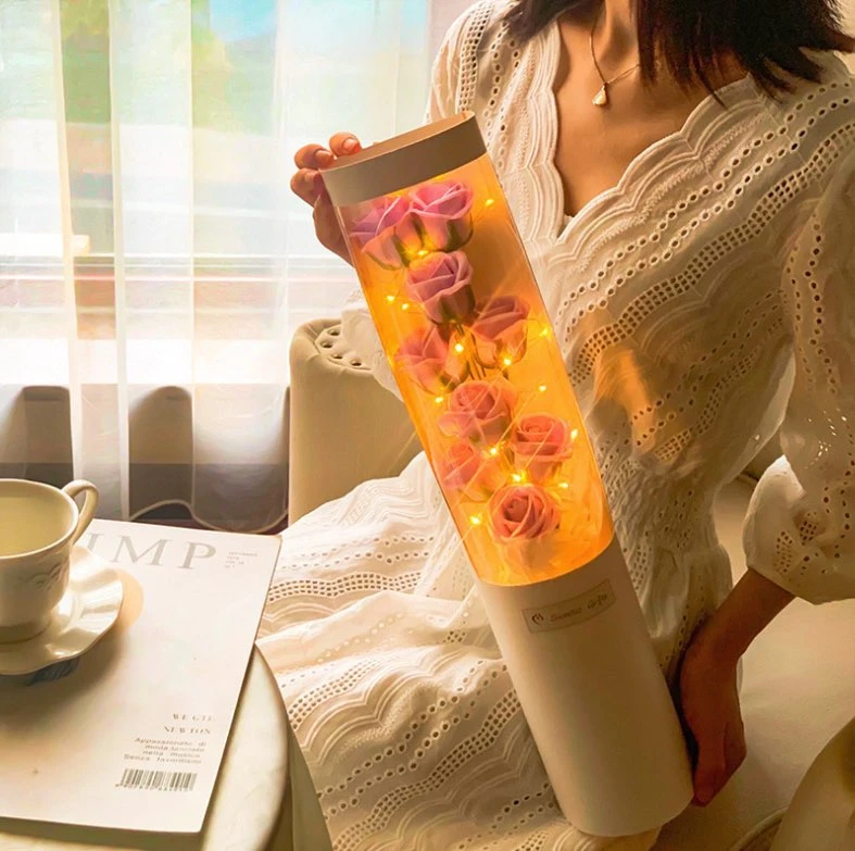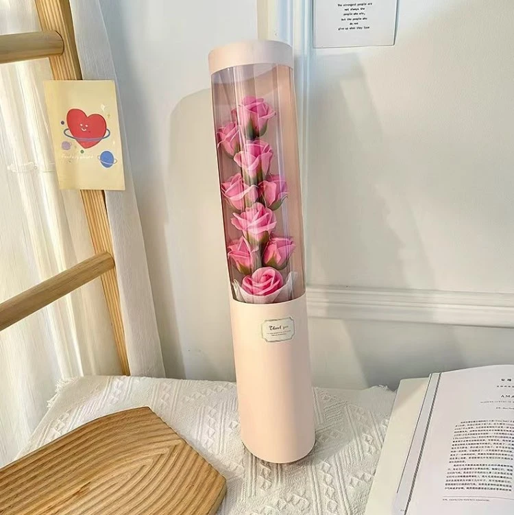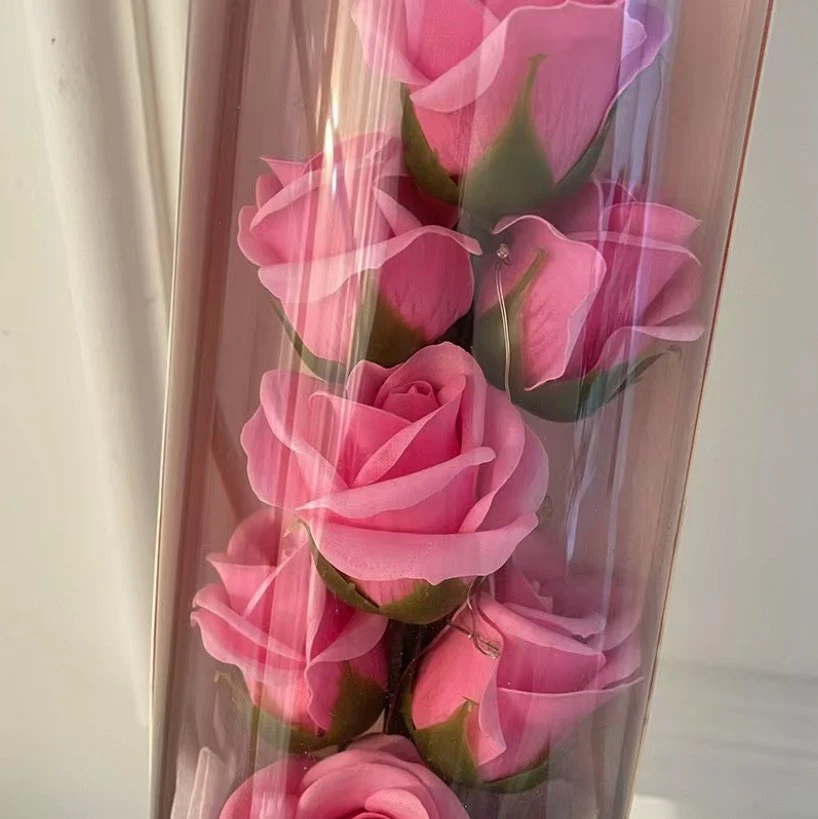 FLOWER BOX Bukiet róże mydlane w tubie z led prezent dekoracja kwiaty różowe dzień kobiet prezent dla niej