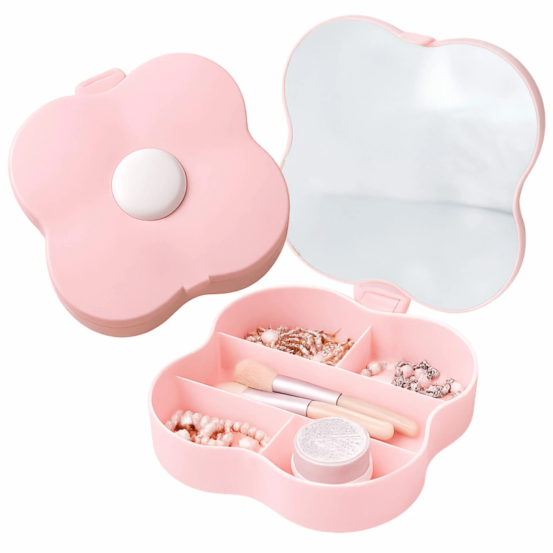Organizer na kosmetyki w kształcie uroczego kwiatka z lusterkiem