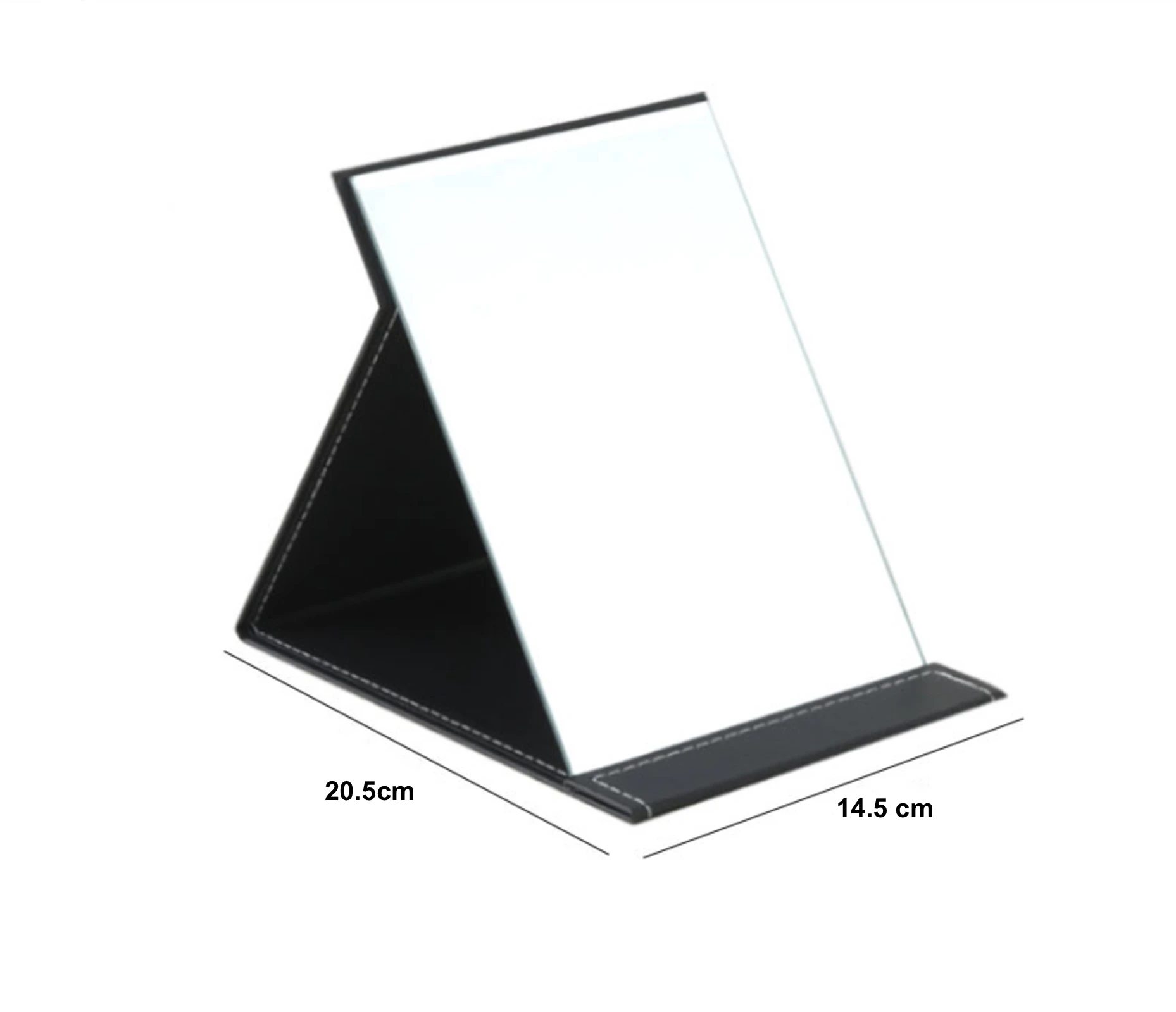 Lusterko posiada podstawę, która umożliwia stabilne ustawienie pod różnym kątem. Po złożeniu zajmuje niewiele miejsca, co czyni je idealnym towarzyszem w podróży.
